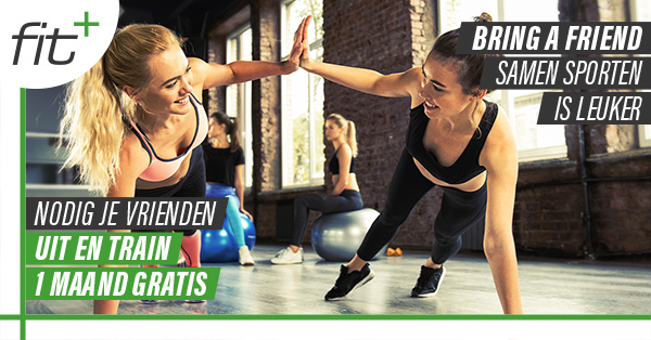 Samen sporten is nóg leuker! Nodig je vriend(in) uit bij fit+ en ontvang 1 maand gratis trainen.